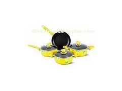Yellow Allover Printing 7 Pcs Nonstick Pan Set Kitchen Cookware