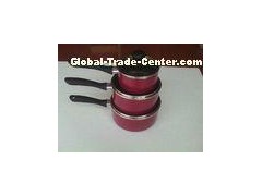 14 / 16 / 18 CM Stamped Non Stick Milk Pan Set , Black / Red